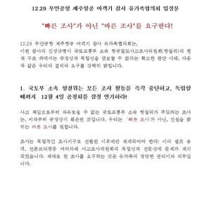 제주항공 여객기 참사와 관련해 유가족들이 항공철도사고조사위원회 조사의 공정성에 대해 문제를 제기하며 거듭 사고 원인에 대한 중간 발표 성격의 공청회를 중단해야 한다고 촉구했습니다.제주항공여객기참사유가족협의회는 입장문을 내고 항철위는 사고 책임에서 자유롭지 못한 국토부 소속 조사기구인 만큼 독립성과 공정성을 담보할 수 없다며 모든 조사 활동을 즉각 중단해야 한다고 강조했습니다.그러면서 국회가 조사기구의 완전한 독립을 보장할 수 있는 법적 근거를 즉시 마련해야 한다며26일 국토교통위원회에서 적극적으로 논의해 달라고 당부했습니다.