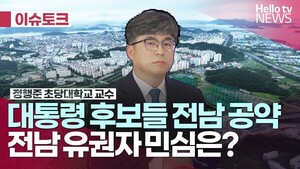 *아래 텍스트는 실제 방송 내용과 차이가 있을 수 있으니 보다 정확한 내용은 방송으로 확인하시기를 바랍니다. 인용시[LG헬로비전 헬로이슈토크]명시해 주시기를 바랍니다. [앵커]안녕하십니까? 지역의 이슈를 살펴보는 헬로 이슈토크입니다. 제21대 대통령 공식 선거 운동이 시작됐습니다. 다음 달 2일까지 대한민국 전역은 치열한 선거 열풍으로 뜨거워질 것으로 예상됩니다. 헬로 이슈토크 오늘은 우리 전남 지역 유권자들의 민심과 또 정치권에 무엇을 요구하고 있는지 이야기 나눠보겠습니다. 도움 말씀에 초당대학교 정행준 교수 나와 계십니다. 안녕
