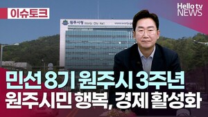 우리 지역 현안과 이슈를 짚어보는 시간입니다. ‘새로운 변화, 큰 행복, 더 큰 원주’라는 슬로건 아래 힘차게 달려온 민선 8기 원주시가 지난 3년을 마무리하고 4년 차에 접어들고 있습니다. 이번 시간 헬로 이슈토크에서는 원주시의 지난 3년을 돌아보고 앞으로의 비전을 내다보는 시간 마련했습니다. Q. 민선 8기 3년을 돌아본 소회“많은 일 하다 보니 시간이 더디게 느껴져”“4년 차, 가시적 성과에 활기 넘쳐”Q. 민선 8기 3년, 원주시 최대 성과는?“지역의 체질 바꾸는 게 시급하다고 느껴”“상업·군사 도시...원
