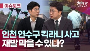 앵커> 지역의 이슈를 속시원히 풀어보는 헬로 이슈토크입니다. 지난달 중순 인천 연수구에서 킥보드로 치여 30대 엄마가 중태에 빠졌습니다. 3세 아이와 편의점 들렀다가 집으로 가던 중이었는데요. 사고를 낸 가해자는 중학생 2명으로 무면허에 안전모도 착용하지 않았고 주행이 금지된 인도에서 전동 기기를 타다가 낸 사고였습니다. 이 사고로 연수구는 킥보드 없는 거리를 만들겠다고 밝혔는데요. 해법이 될 수 있을지 짚어봅니다. 함께 할 두 분, 이승욱 한겨레 기자와 서강대 겸임교수인 이승기 변호사 자리했습니다. [진행 송효창][이승욱 한겨레
