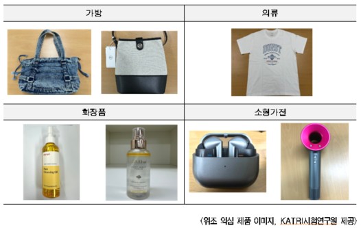 점검 결과 가방과 화장품 제품에서 로고·표시사항·성분 등이 모두 정품과 달랐고, 일부는 주요 성분까지 다른 것으로 드러났습니다.