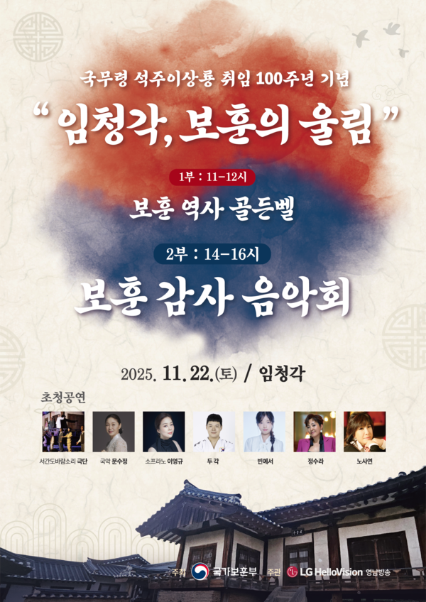 국가보훈부가 오는 22일, 안동 임청각에서 보훈 감사 음악회를 개최합니다.