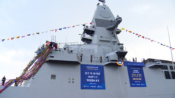 [고동춘 / 방위사업청 호위함사업팀 팀장(해군 대령) : 대한민국의 뛰어난 조선 기술과 국방과학기술이 집약된 최신예 호위함입니다. 향후 전남함은 해역함대의 주역으로서 대한민국의 바다를 지키며 국민의 필승 해군 전통과 전남함의 명성을 이어 나가겠습니다.]
